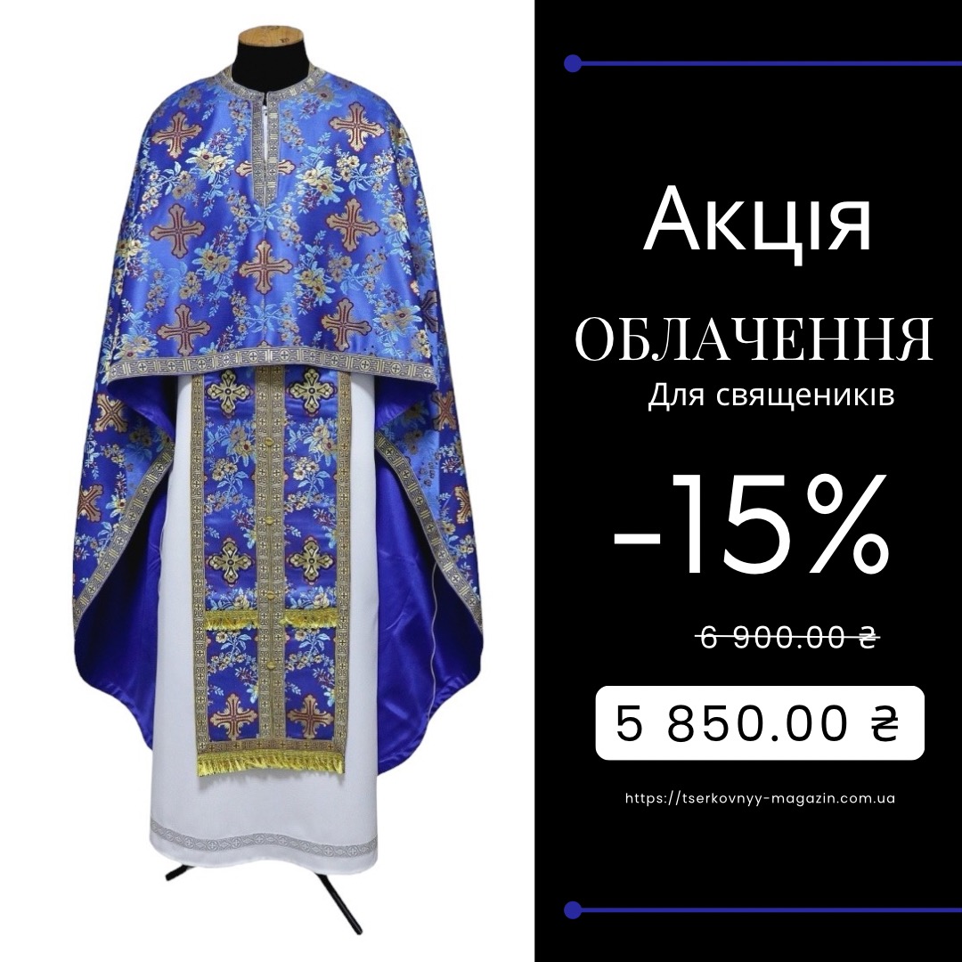 В комплект входит: фелонь, епитрахиль, поручи, пояс, покровцы, набедренник, палица.