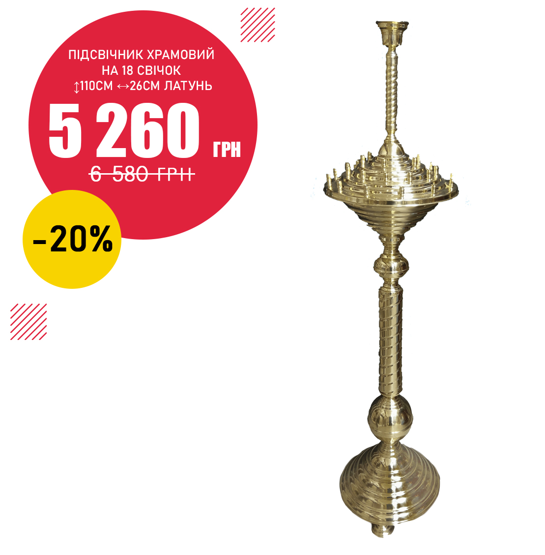 Подсвечник ХРАМОВЫЙ на 18 свечей ↕110см ↔26см Латунь