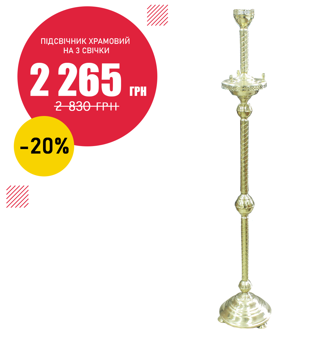 Подсвечник ХРАМОВЫЙ на 3 свечи ↕000см ↔00см Латунь