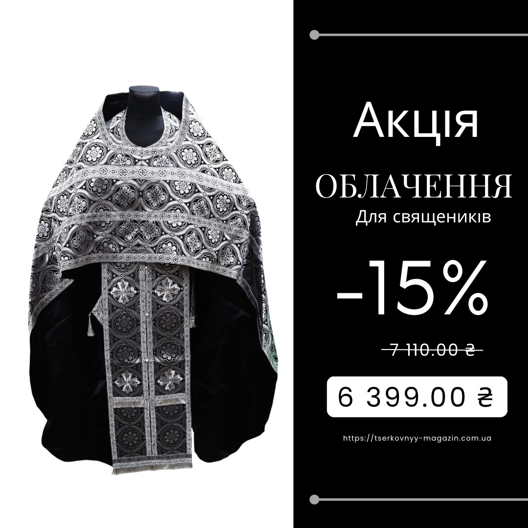 Облачение священника Черная 60р/д155см Парча "Ромашка" АКЦИЯ!