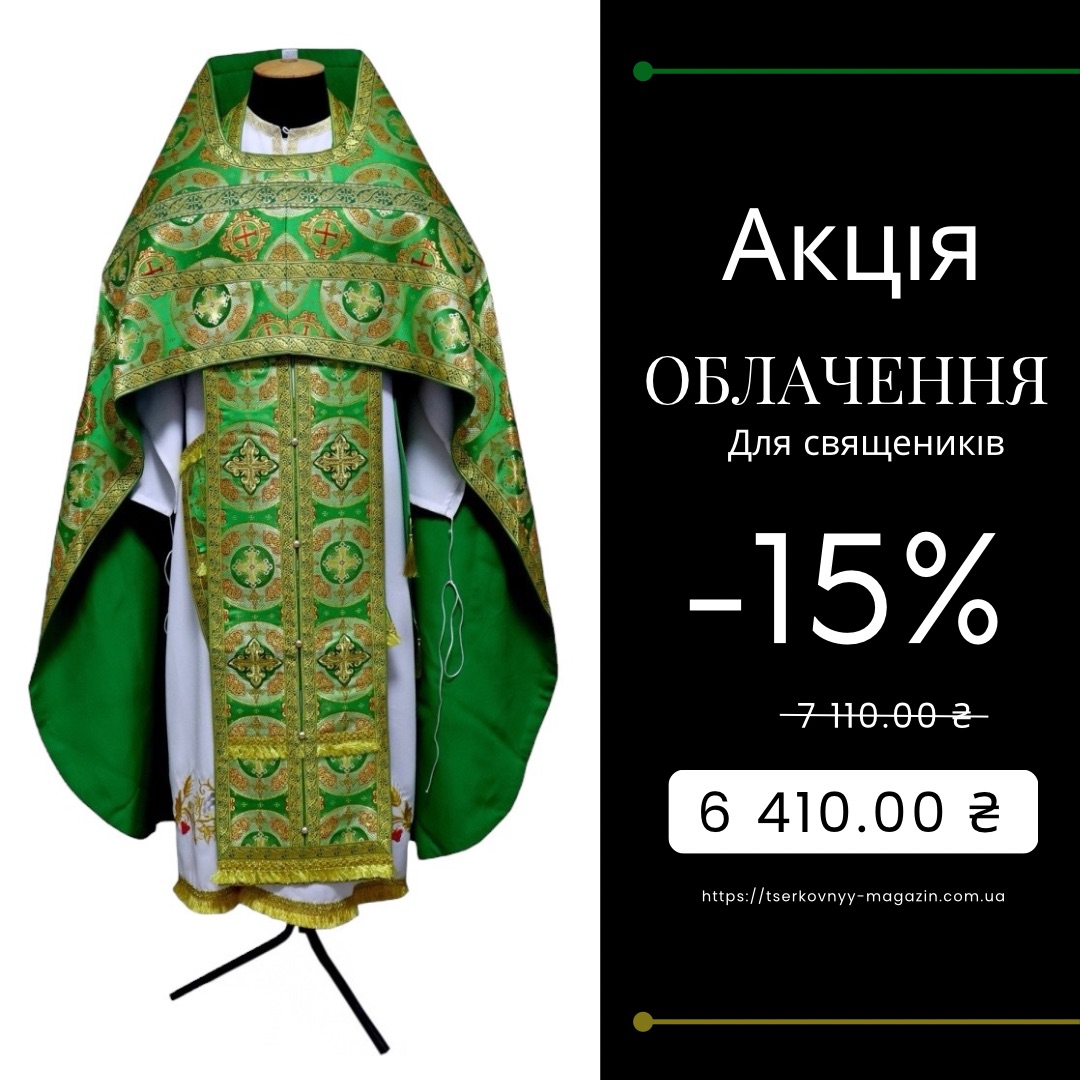 Облачение священника Зеленая 52-54р/д155см Парча "Роза" АКЦИЯ!