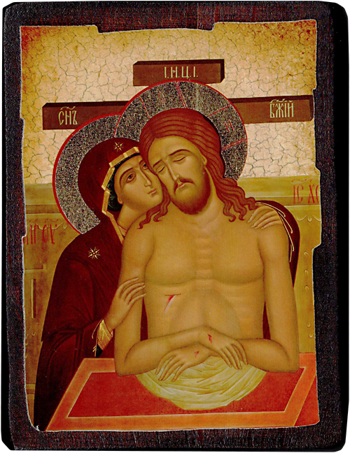 Икона ручной работы, искусственно сделанная под старину, материал: дерево, литография, краски, золочение, лаки. На оборотной стороне сургучная печать с символом Святой горы Афон. Упаковка конверт из мешковины.