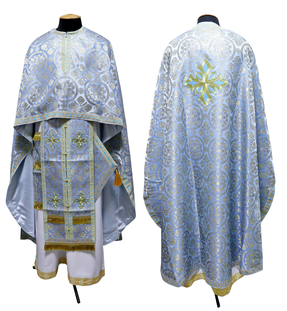 Облачение Голубо-золотое 54р/д145см Парча "Розочки"
