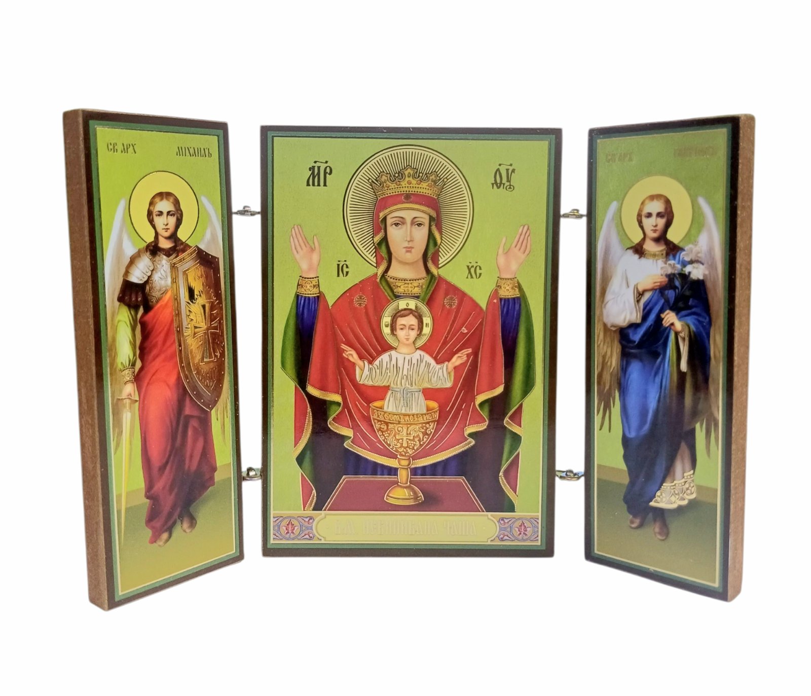 Складень "Неупиваемая чаша" (Арх. Михаил и Гавриил) ↕8.5см ↔6см ДСП Литография