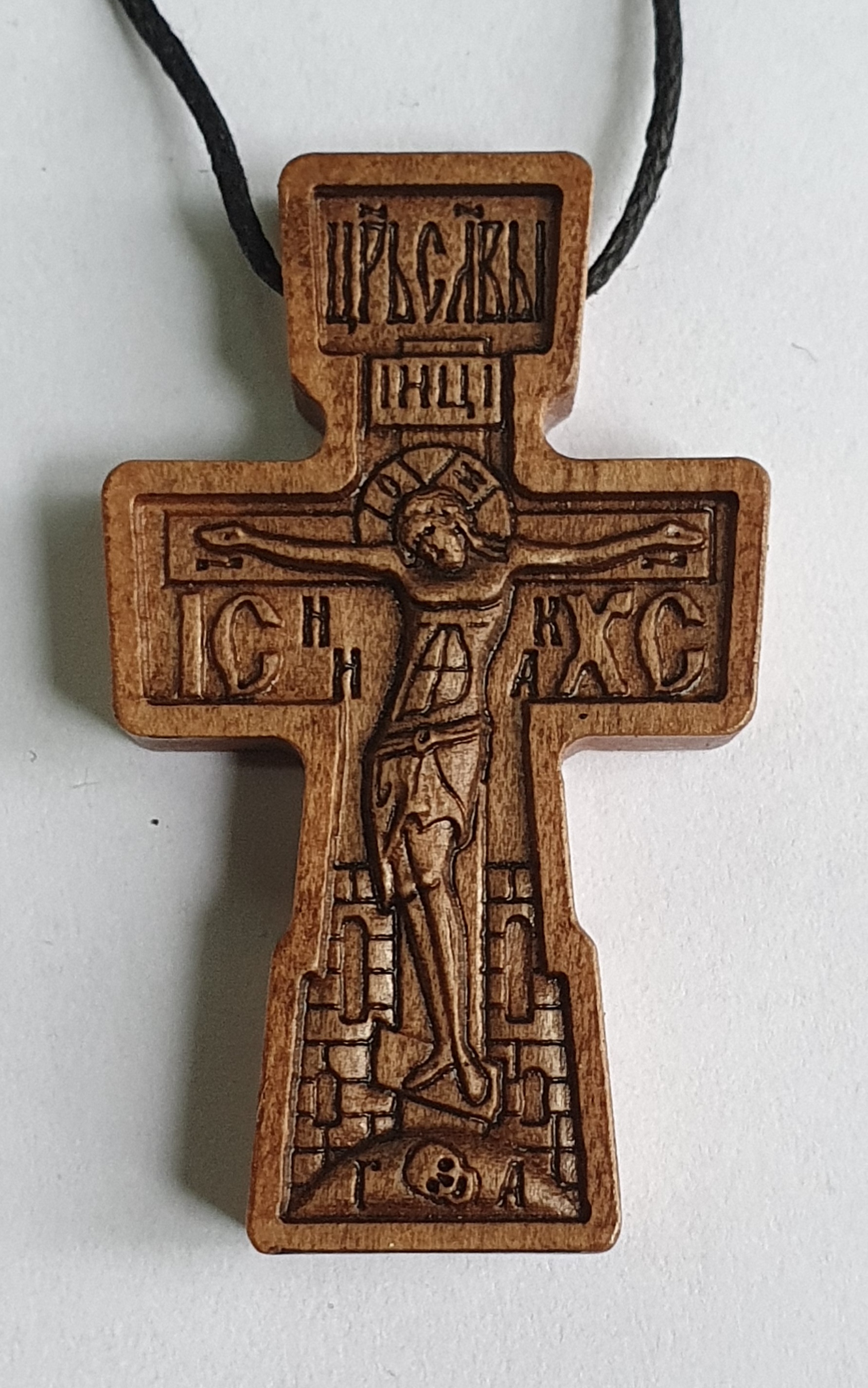 Нательный деревянный крестик освящен.