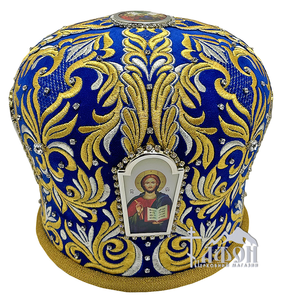 МИТРА Синяя Размер 59.5 Велюр Вышивка Стразы