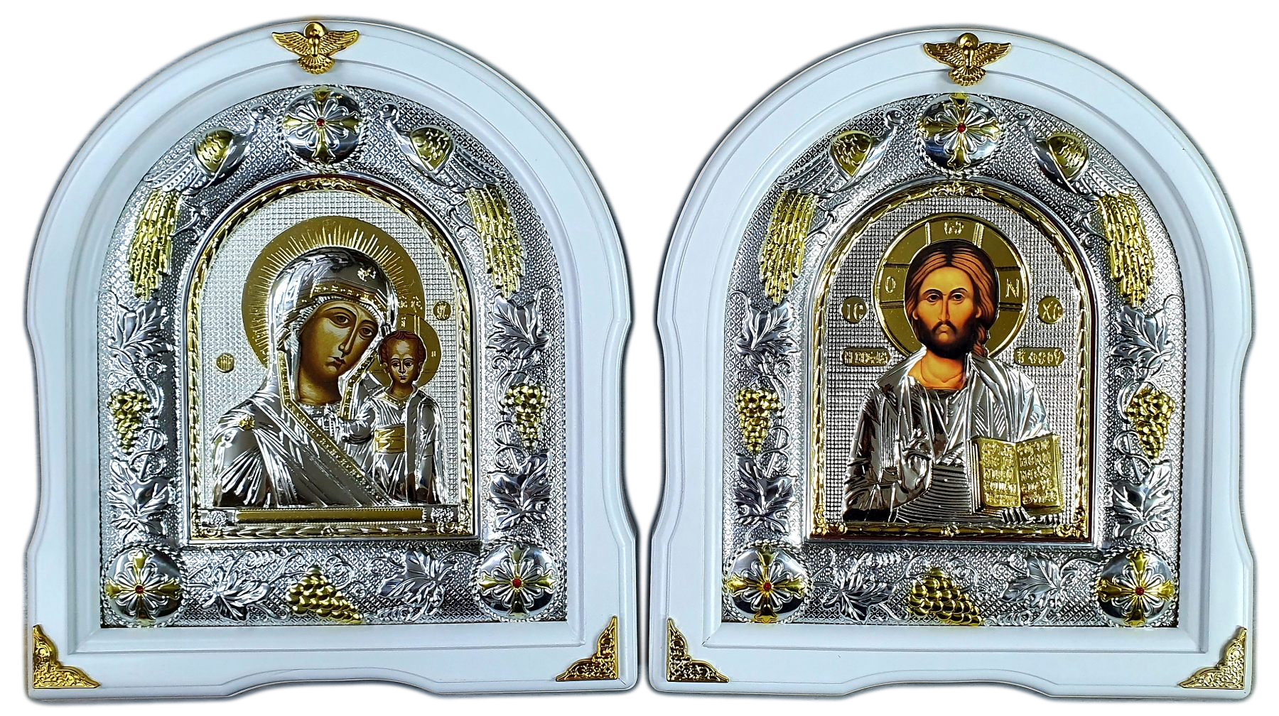 Пара Вседержитель Казанская ↕28см ↔25см Полиграфия PVD(серебрение)