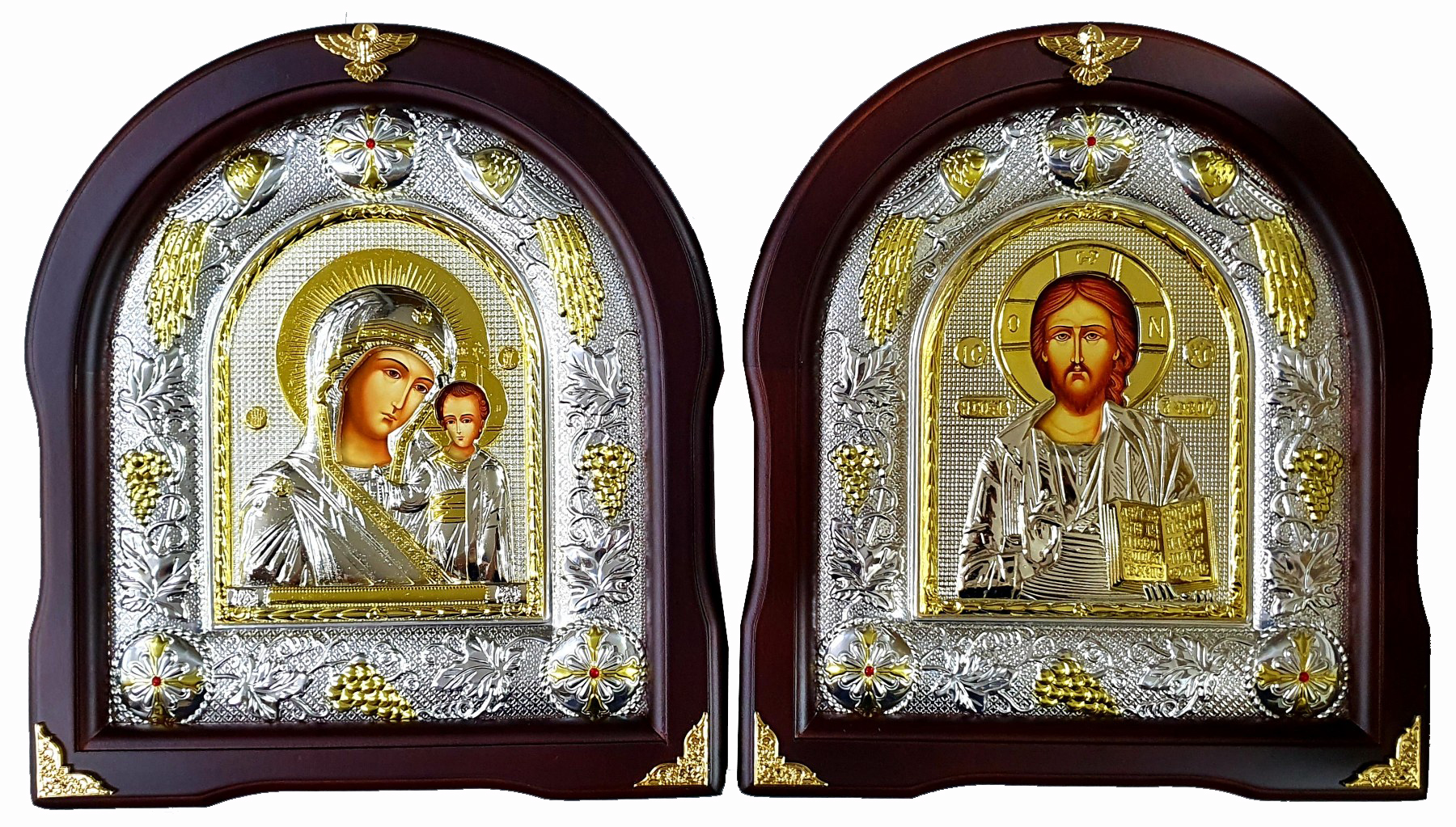 Пара Вседержитель Казанская ↕28см ↔25см Полиграфия PVD(серебрение)