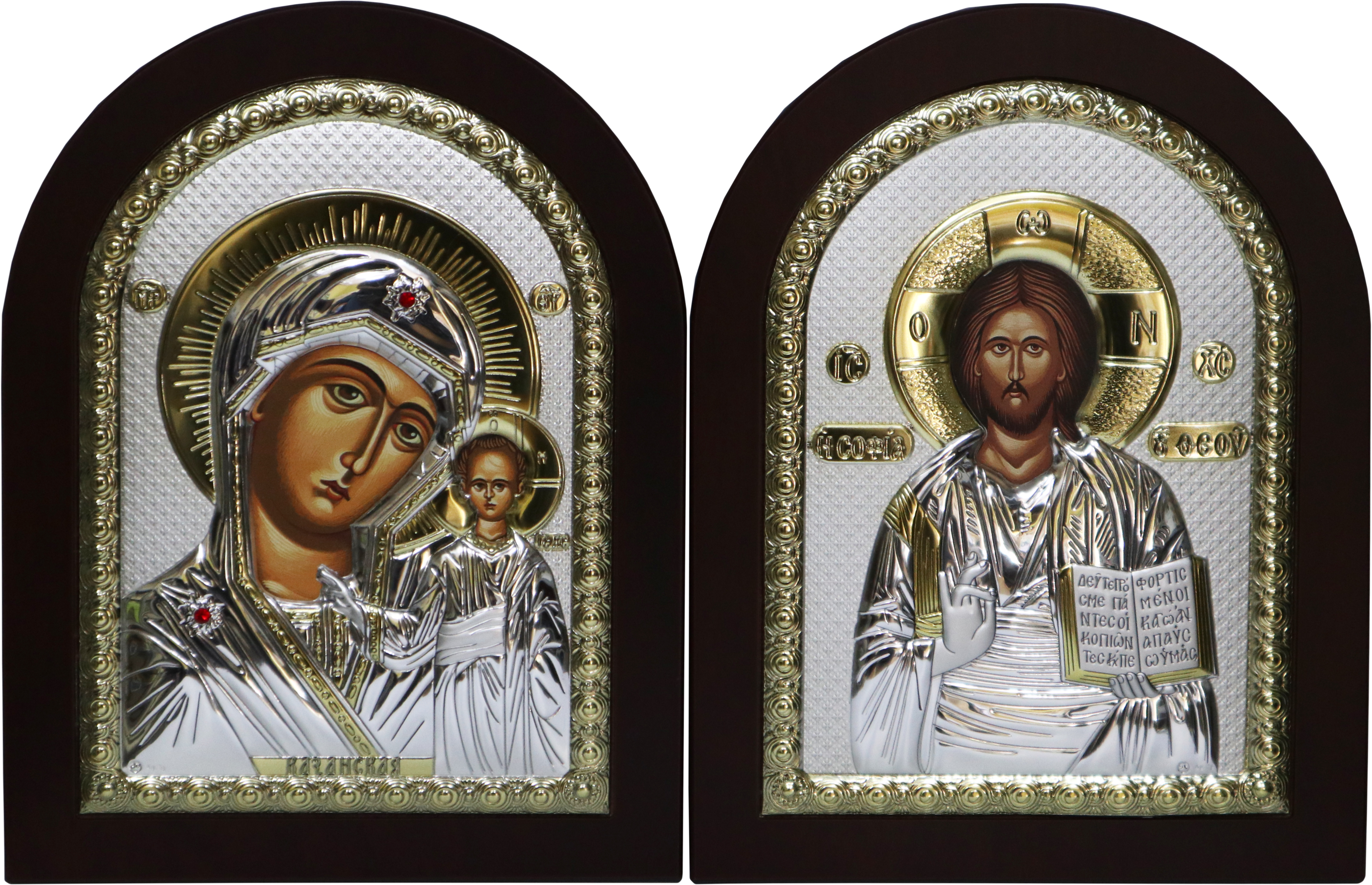 Пара Вседержитель Казанская ↕26см ↔20см Полиграфия PVD(серебрение) Греция