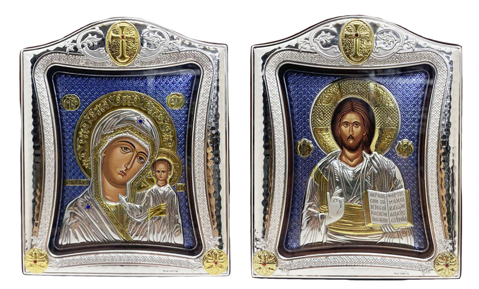 Пара Вседержитель Казанская ↕18см ↔14см Полиграфия PVD(серебрение) Стекло Греция