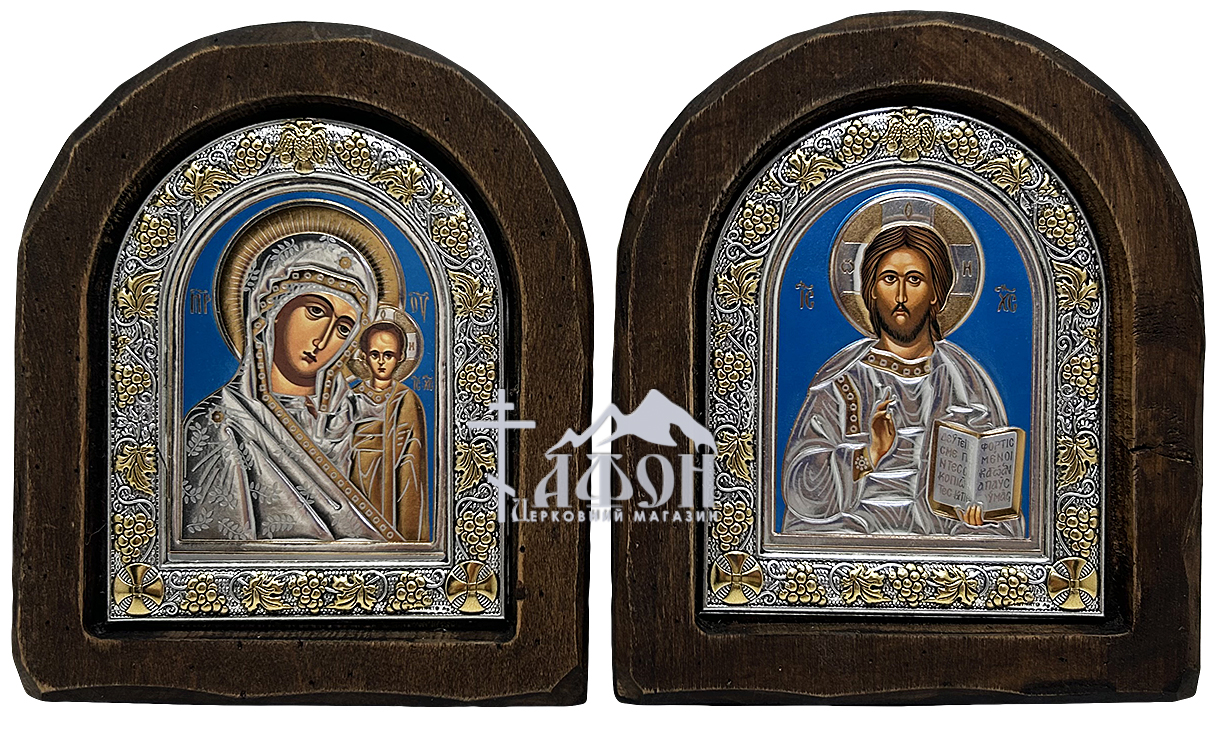 Пара Вседержитель Казанская 13/11.5см Дерево Серебрение