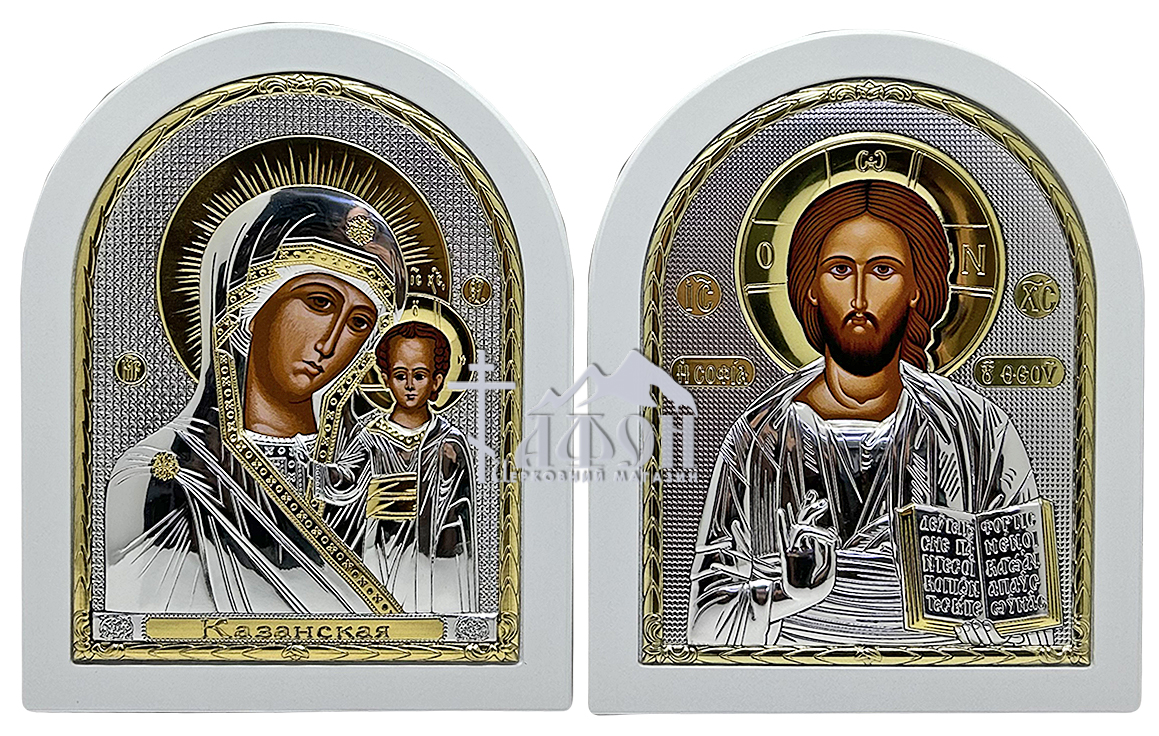 Пара Вседержитель Казанская ↕24.5см ↔20см Полиграфия PVD(серебрение)