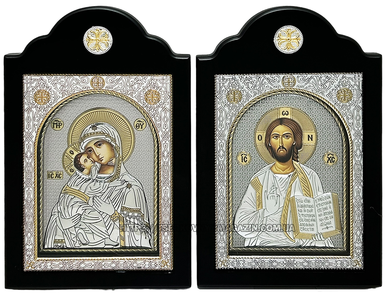 Пара Вседержитель Владимирская ↕25см ↔16см Полиграфия PVD(серебрение) Греция