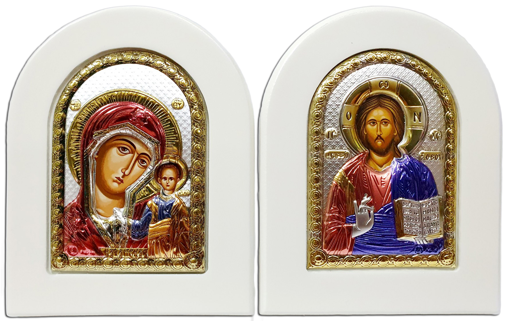 Пара Вседержитель Казанская ↕9см ↔7,5см МДФ Полиграфия PVD(серебрение)