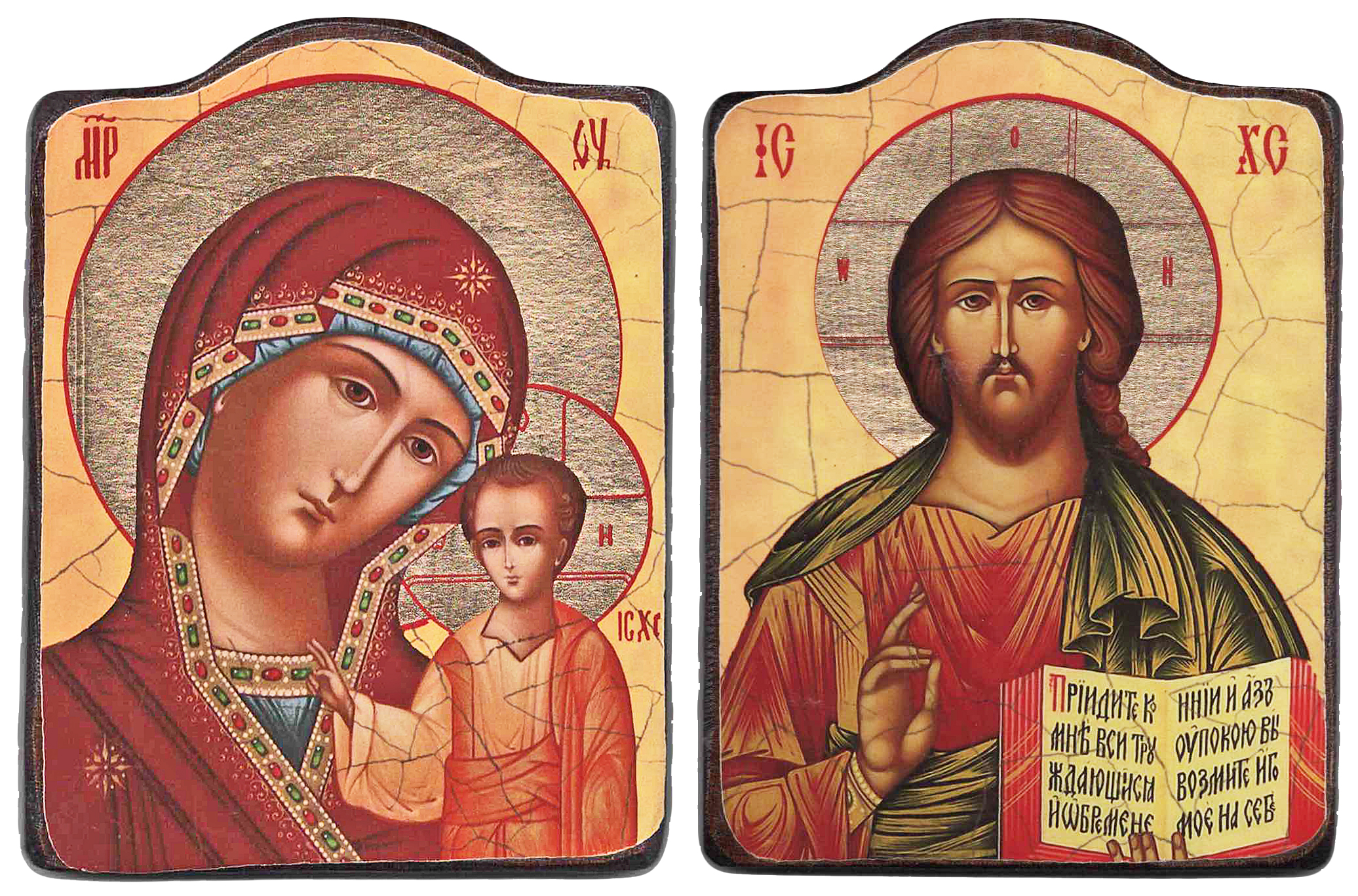 Пара Вседержитель Казанская 17см ↔12.5см Дерево Литография