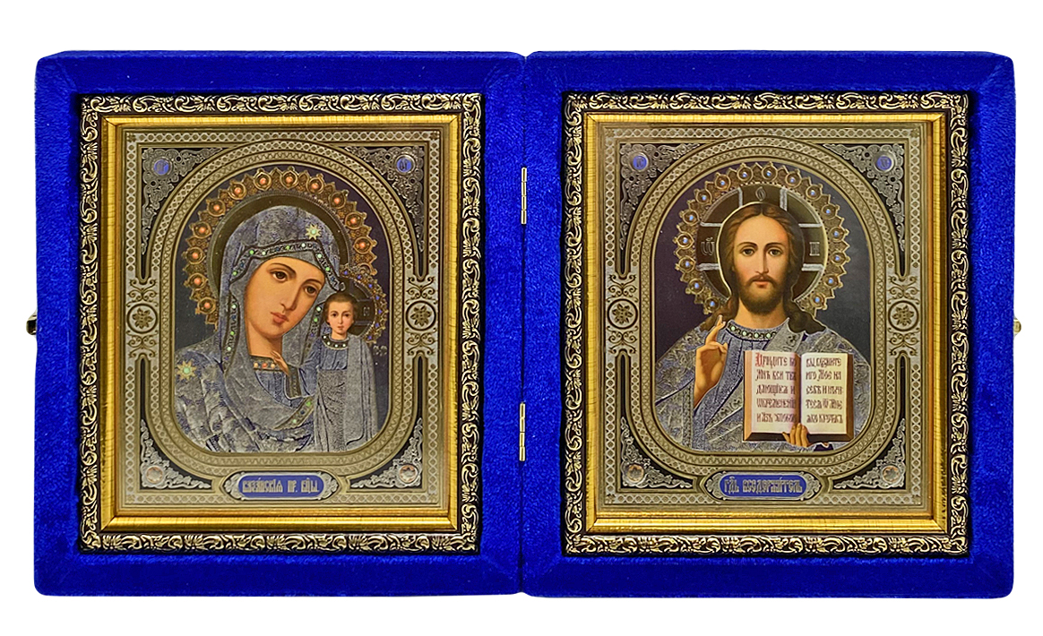 Складень Вседержитель Казанская ↕23см ↔21см Синий Бархат