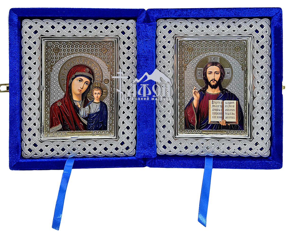 Складень Вседержитель Казанская ↕26см ↔22см Синий Велюр