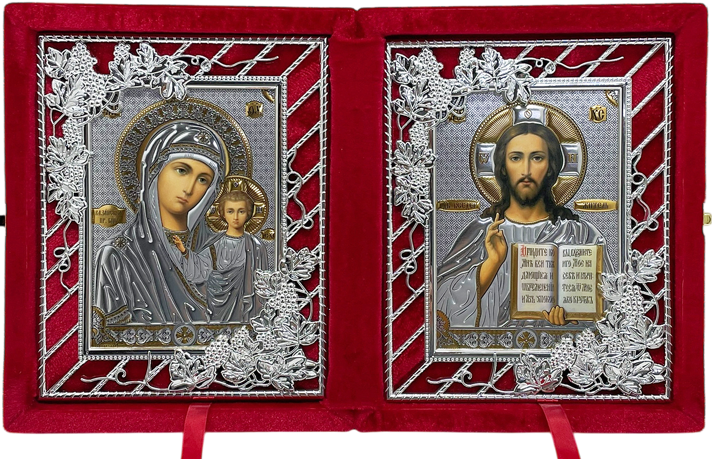 Складень Вседержитель Казанская ↕25см ↔20,5см Синий Велюр