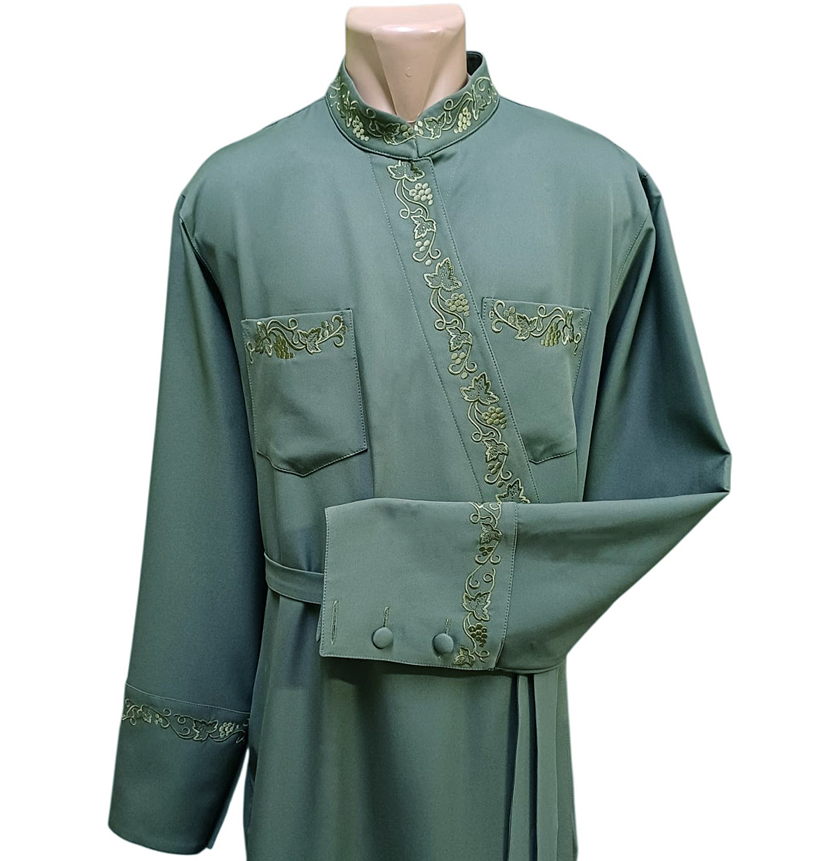 Подрясник греческий Хаки Костюмная ткань 50р Вышивка Виноград