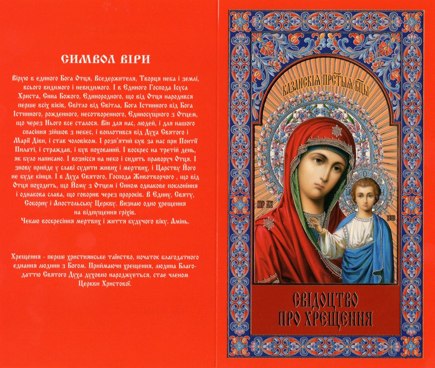 Свидетельство о КРЕЩЕНИИ Красное УКР, Язык (200шт/упак)