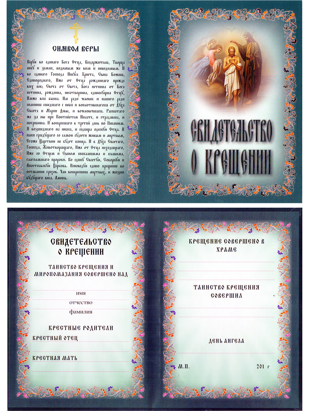 Свидетельство о крещении (50шт. в упаковке муж.русс. тв.об)