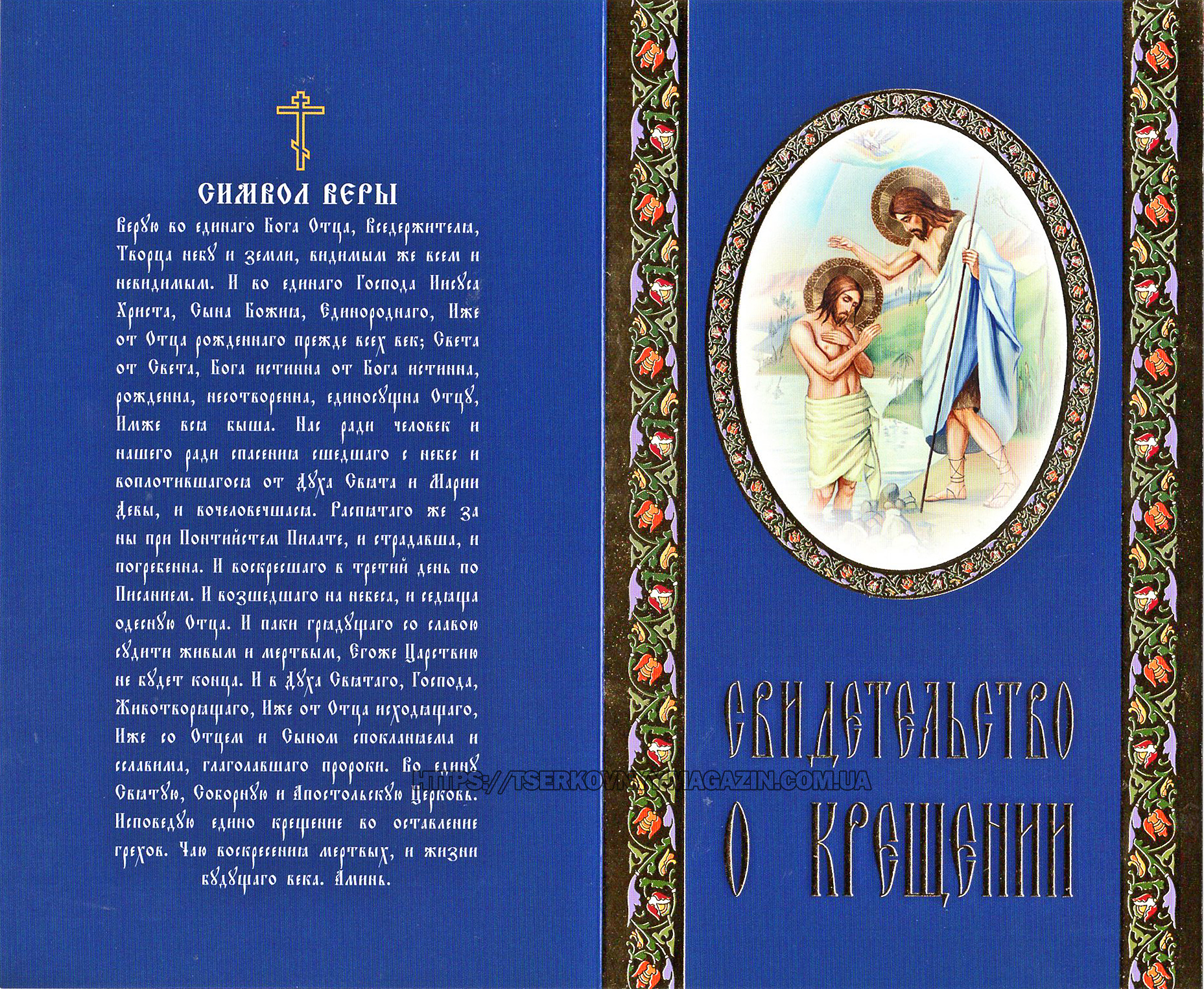 Свидетельство о КРЕЩЕНИИ Синие РУСС. Язык (200шт/упак) МО