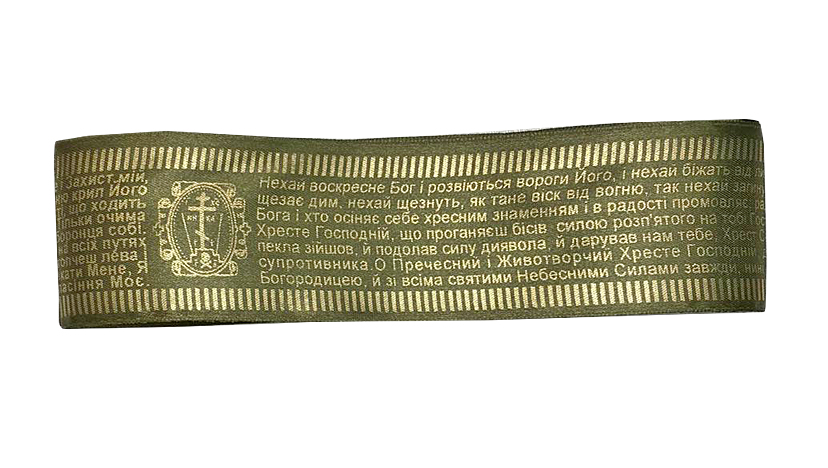 ЛЕНТА с охоронной молитвой УКР язык КОРОТКАЯ 83см Хаки