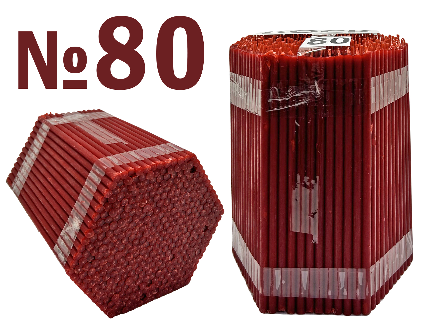 2кг Свечи 80%ВОСКОВЫЕ №80 КРАСНЫЕ Количество - 400шт