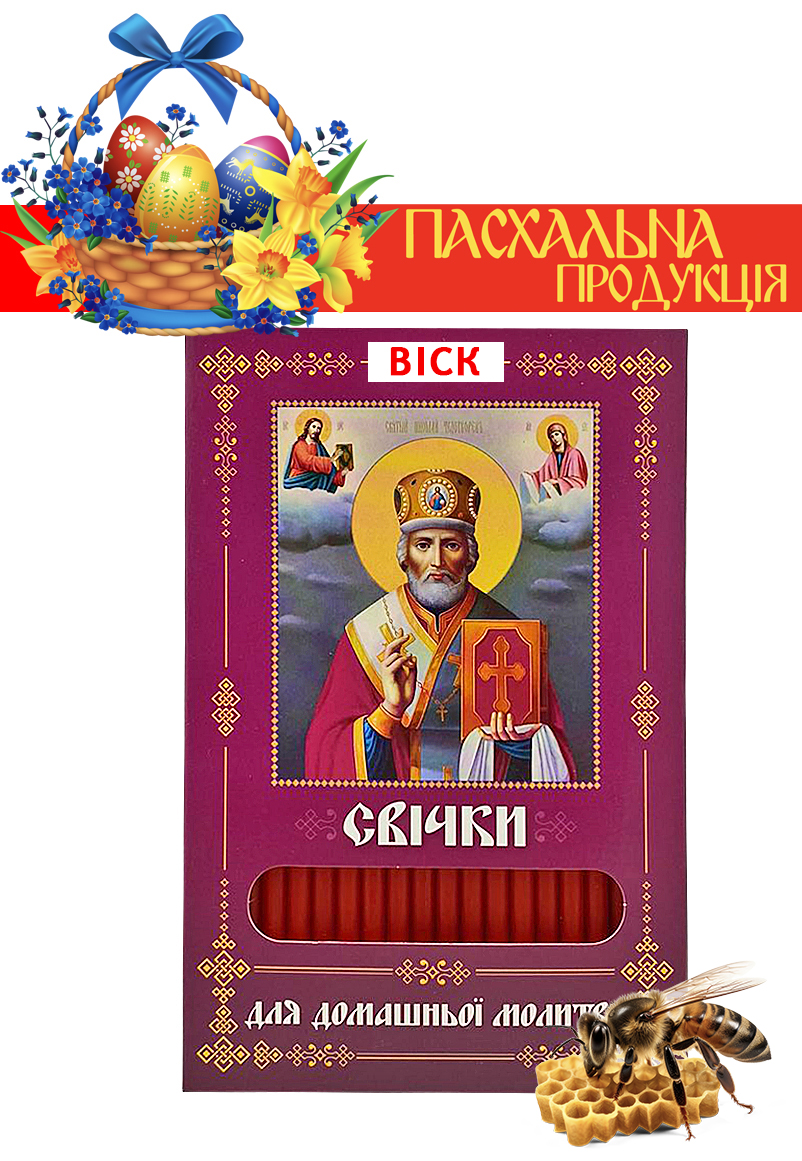 Свечи ВОСКОВЫЕ ПАСХАЛНЫЕ для домашней молитвы НИКОЛАЙ ЧУДОТВОРЕЦ укр. 40шт