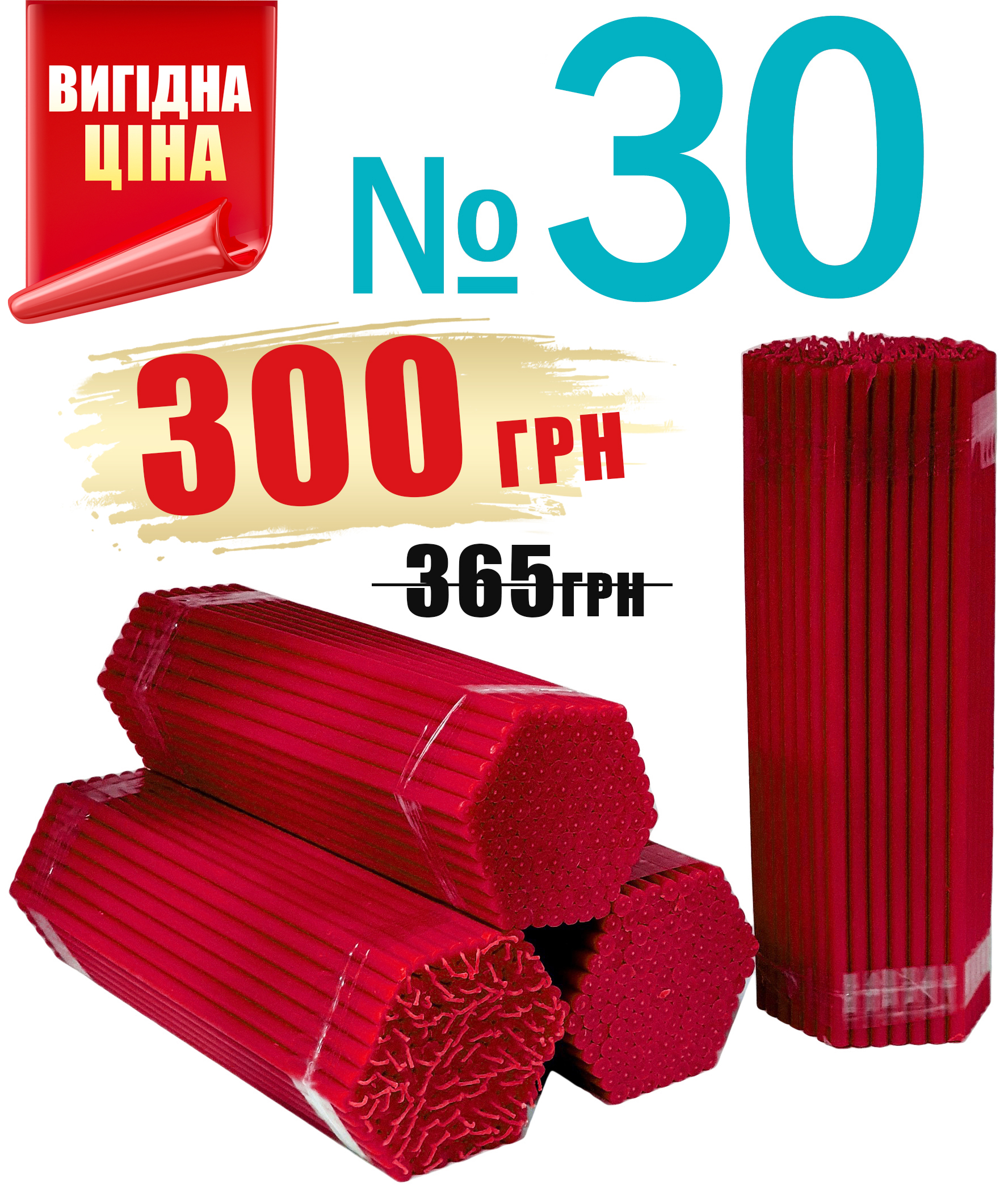 Свечи ПАРАФИНОВЫЕ Красные №30 Количество-150шт