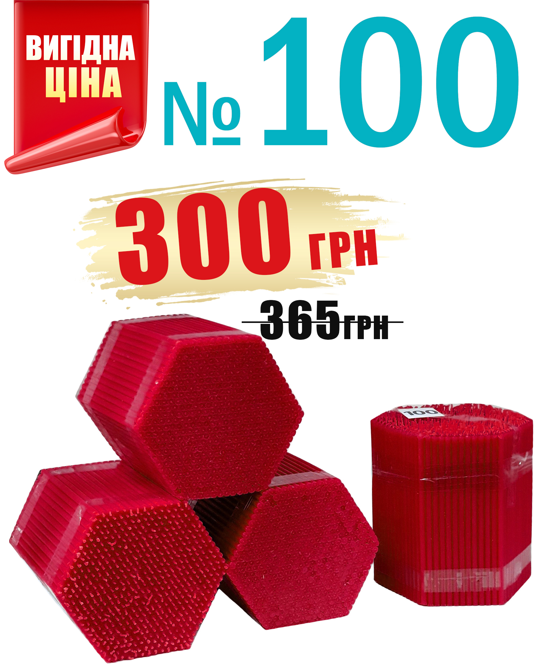 Свечи ПАРАФИНОВЫЕ Красные №100 Количество-500шт