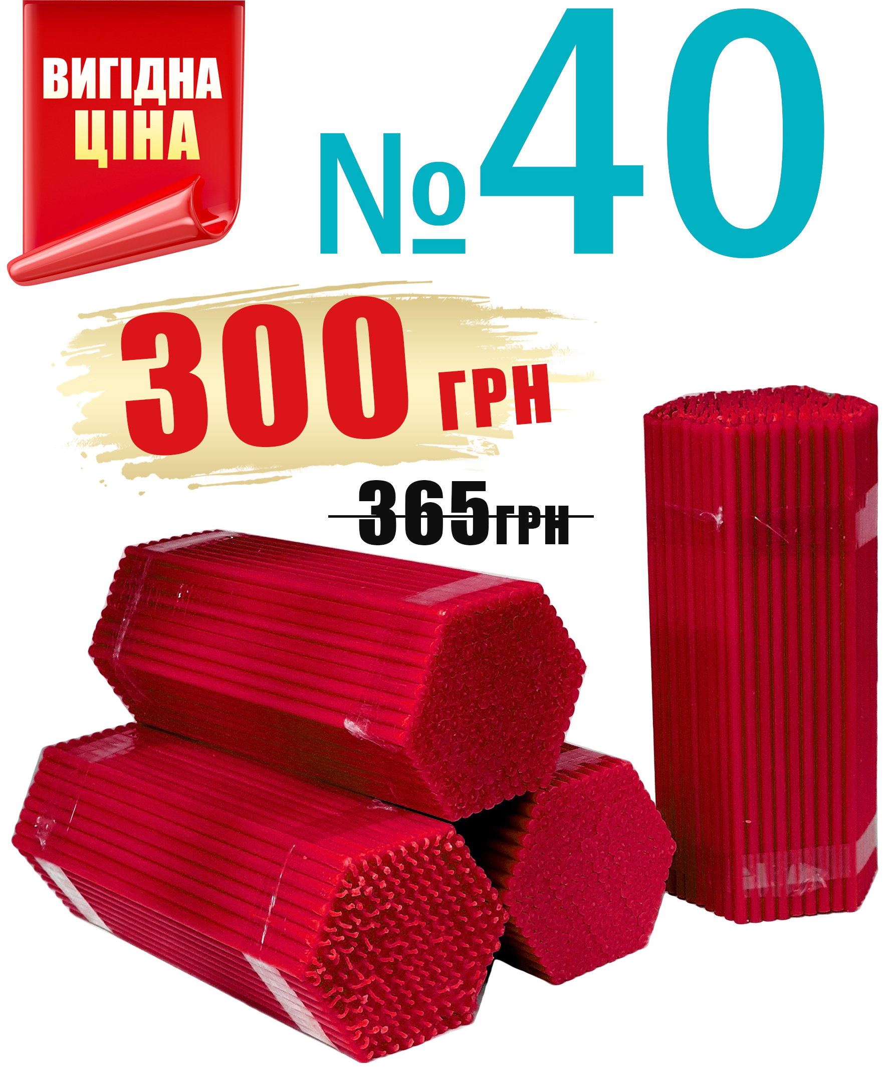 Свечи ПАРАФИНОВЫЕ Красные №40 Количество-200шт
