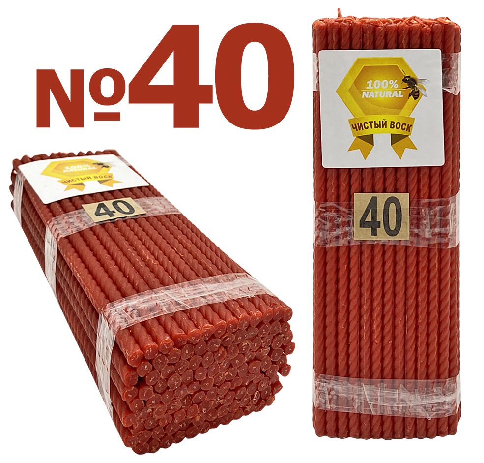 Свечи восковые красные №40 1- кг Высота: 26 см Диаметр: 7 мм Количество в пачке: 100 шт ВНИМАНИЕ! ВЕС ИЗДЕЛИЯ УКАЗАН ПРИБЛИЗИТЕЛЬНО!