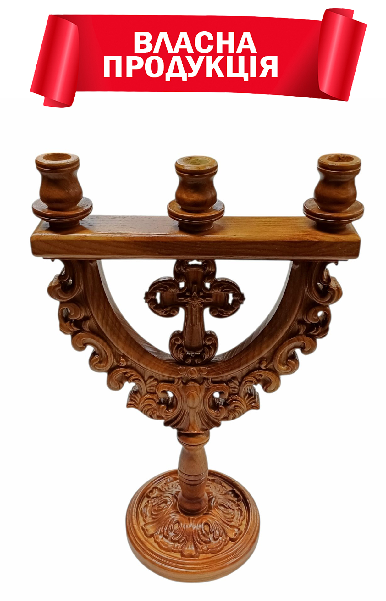 ТРЕХСВЕЧНИК ↕36см ↔24см Ø 1,7 см Ольха Резьба