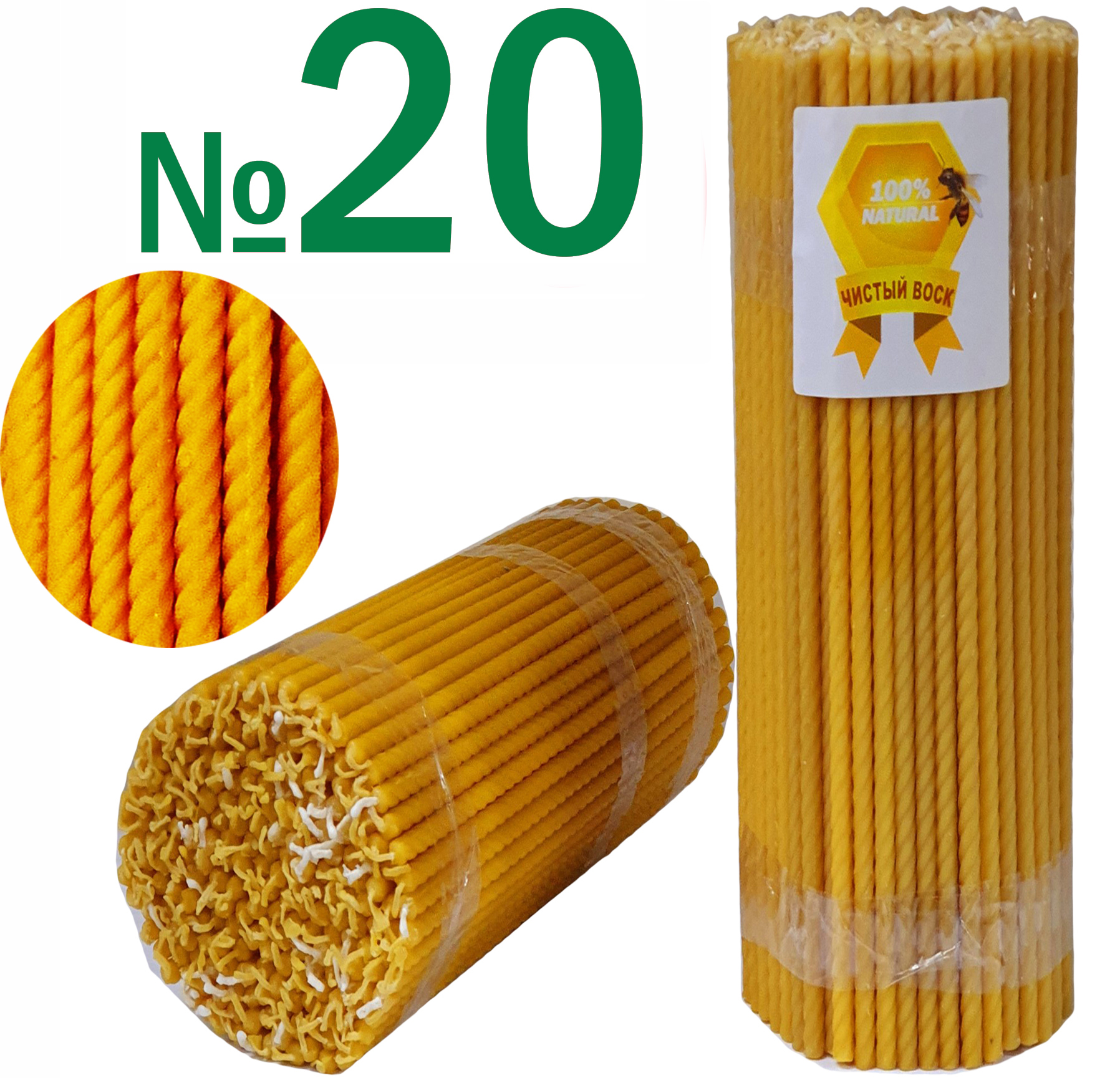 2кг Свечи 100%ВОСКОВЫЕ СПИРАЛЬНЫЕ №20 Количество - 100шт