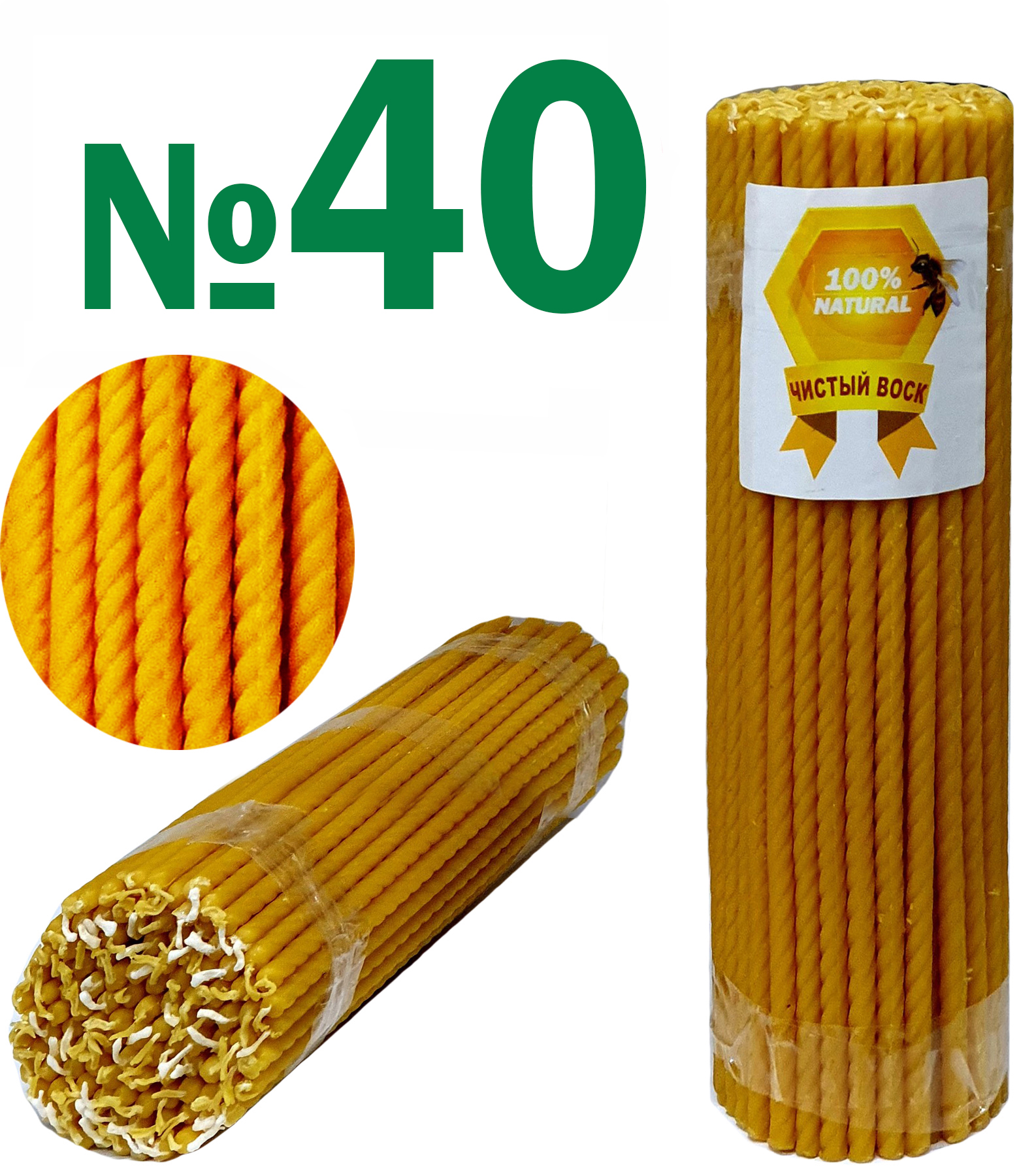 1кг Свечи 100%ВОСКОВЫЕ СПИРАЛЬНЫЕ №40 Количество - 100шт