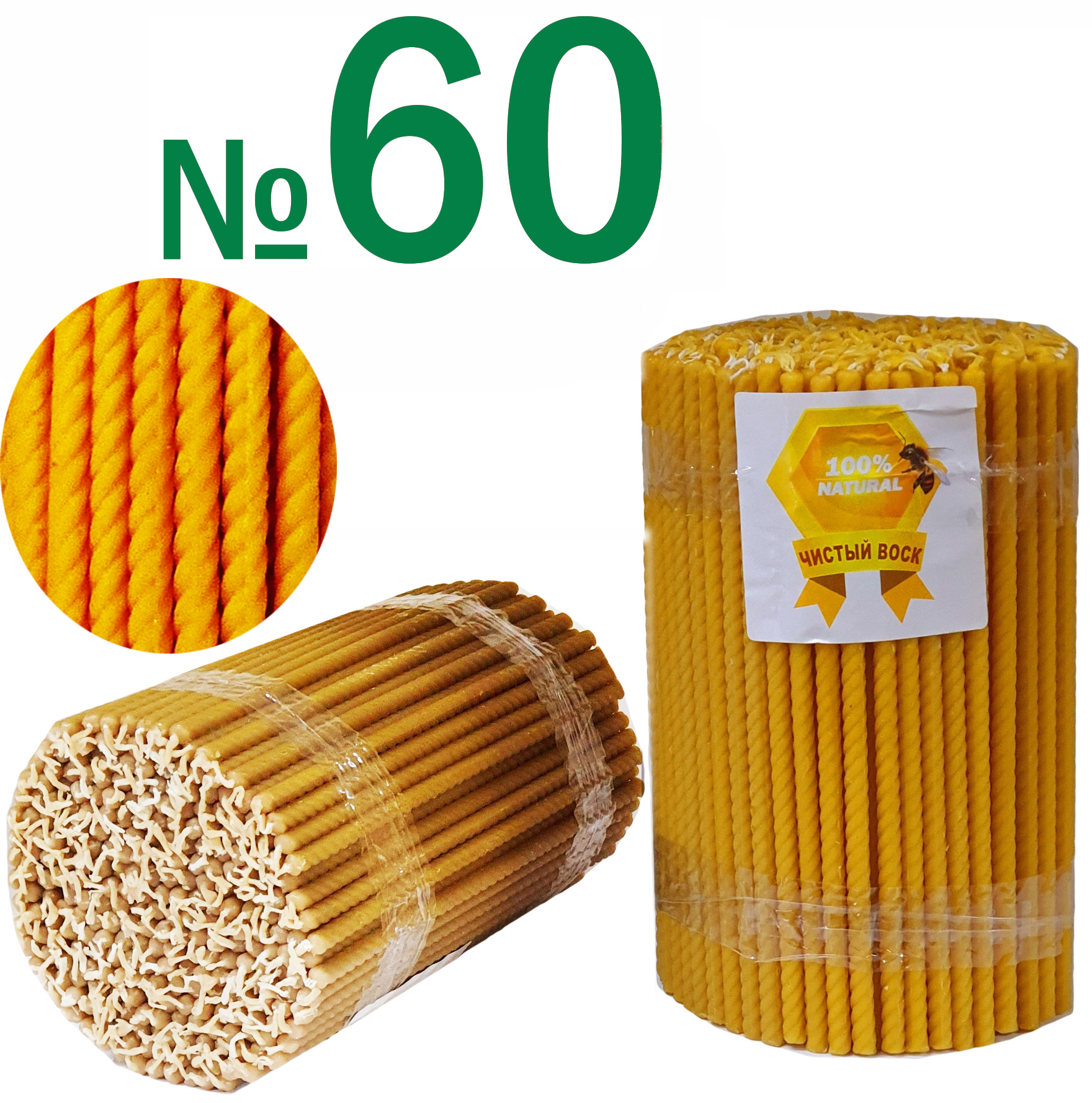 2кг Свечи 100%ВОСКОВЫЕ СПИРАЛЬНЫЕ №60 Количество - 300шт