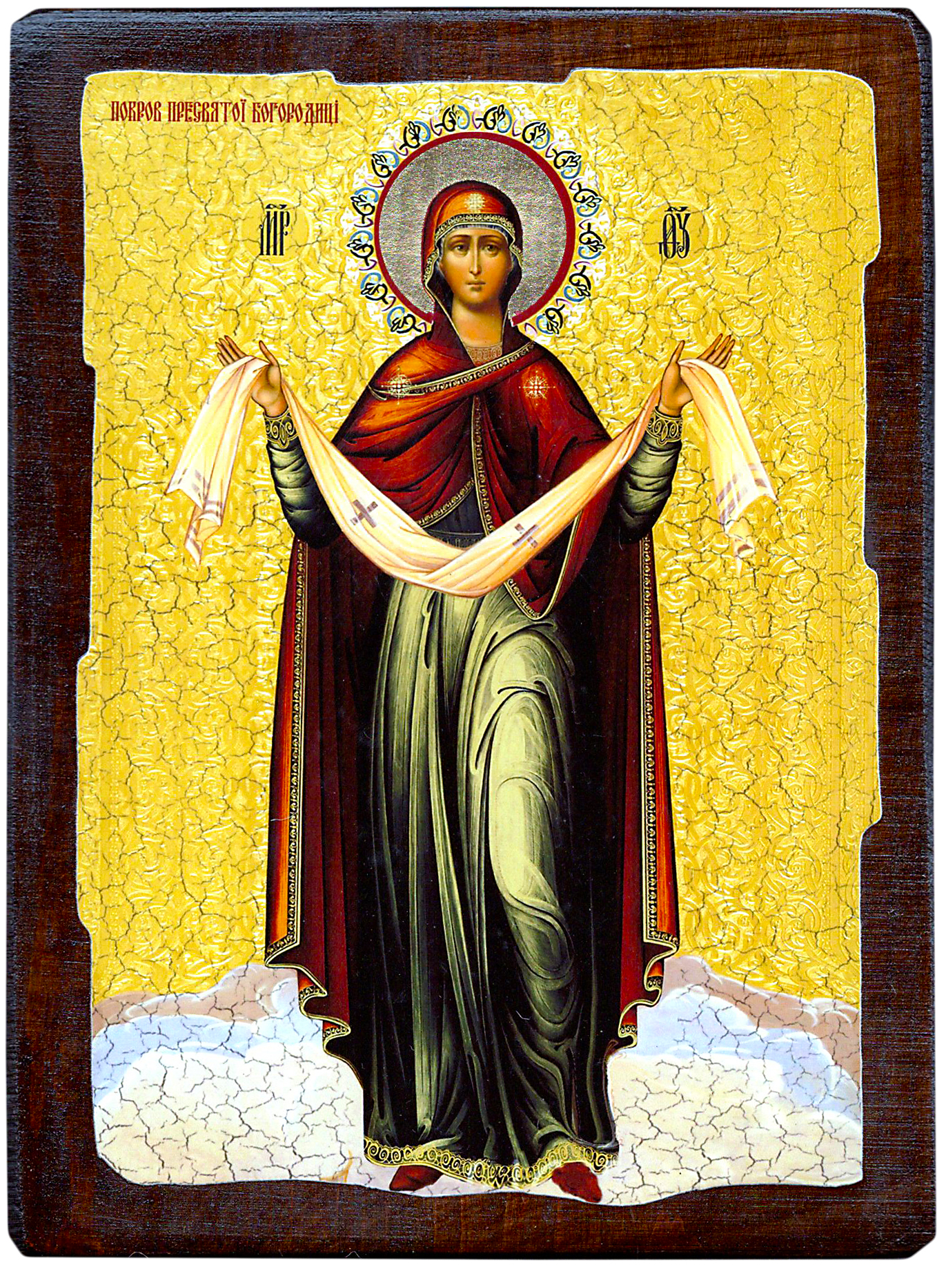 ПОКРОВ Пресвятой Богородицы ↕23см ↔17см Дерево Литография