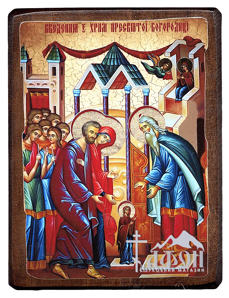 ВВЕДЕНИЕ во ХРАМ Пресвятой Богородицы ↕23см ↔17см Дерево Литография