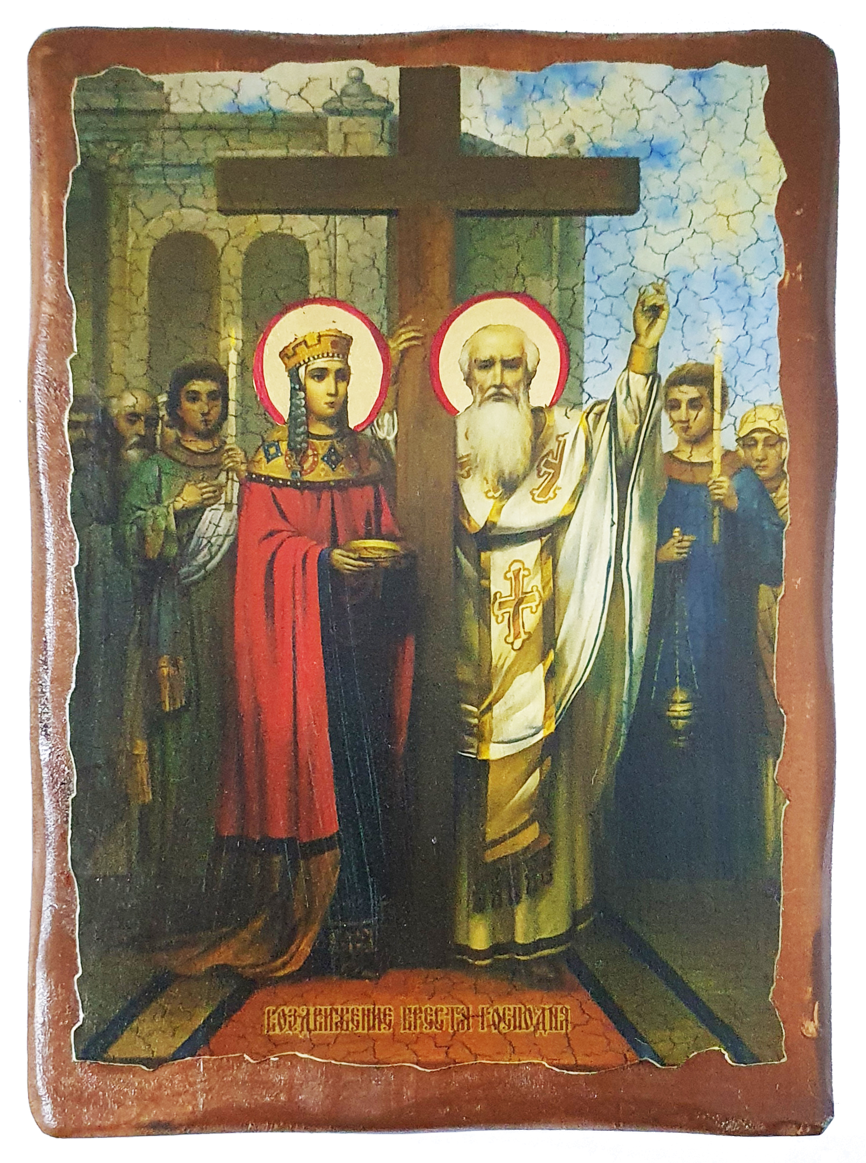 ВОЗДВИЖЕНИЕ КРЕСТА ГОСПОДНЯ ↕23см ↔17см Дерево Литография
