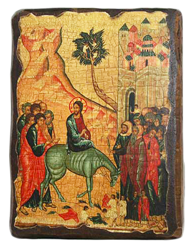 ВХОД ГОСПОДЕНЬ В ИЕРУСАЛИМ ↕17см ↔13см Дерево Литография