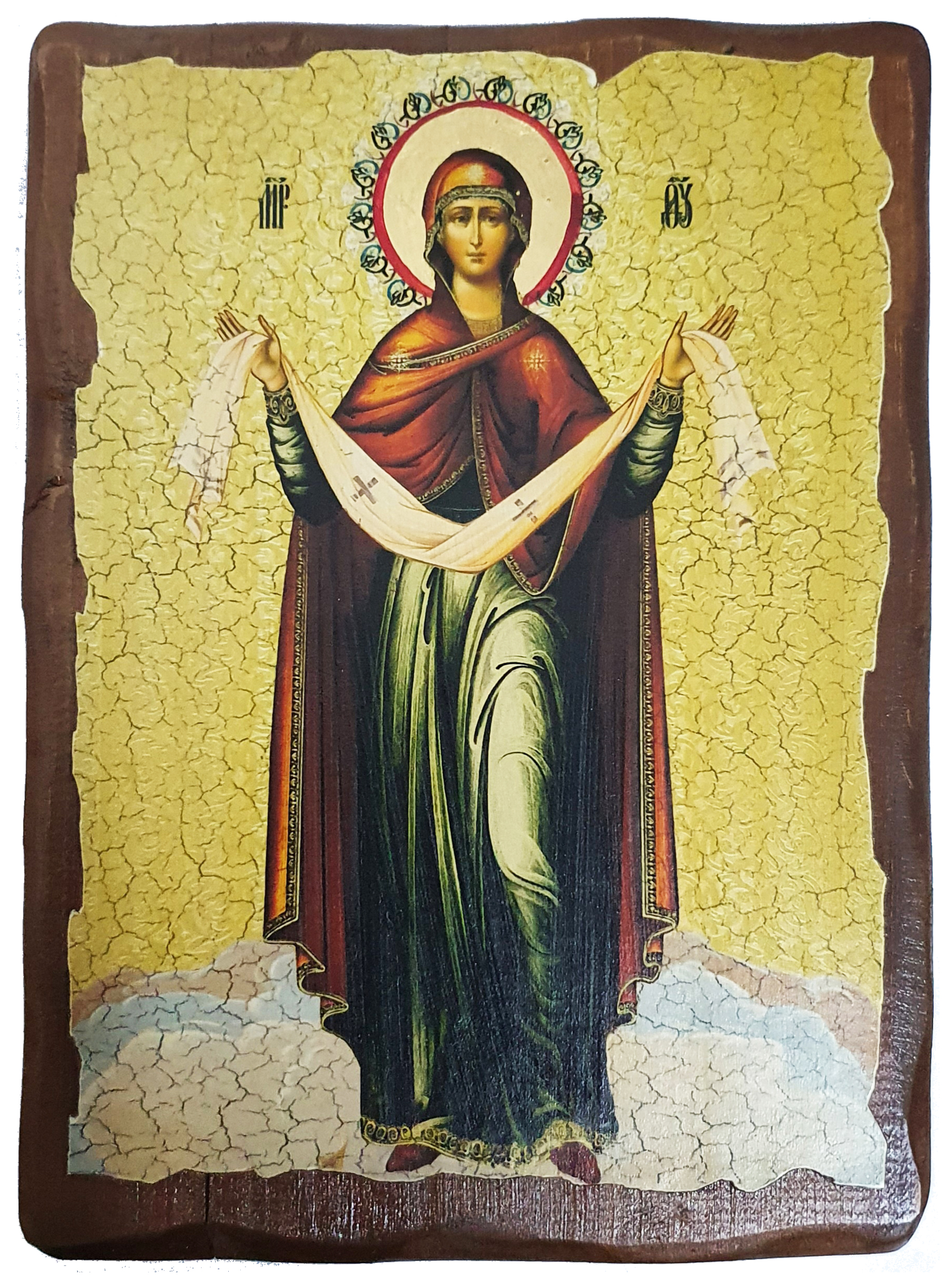ПОКРОВ Пресвятой Богородицы ↕17см ↔13см Дерево Литография