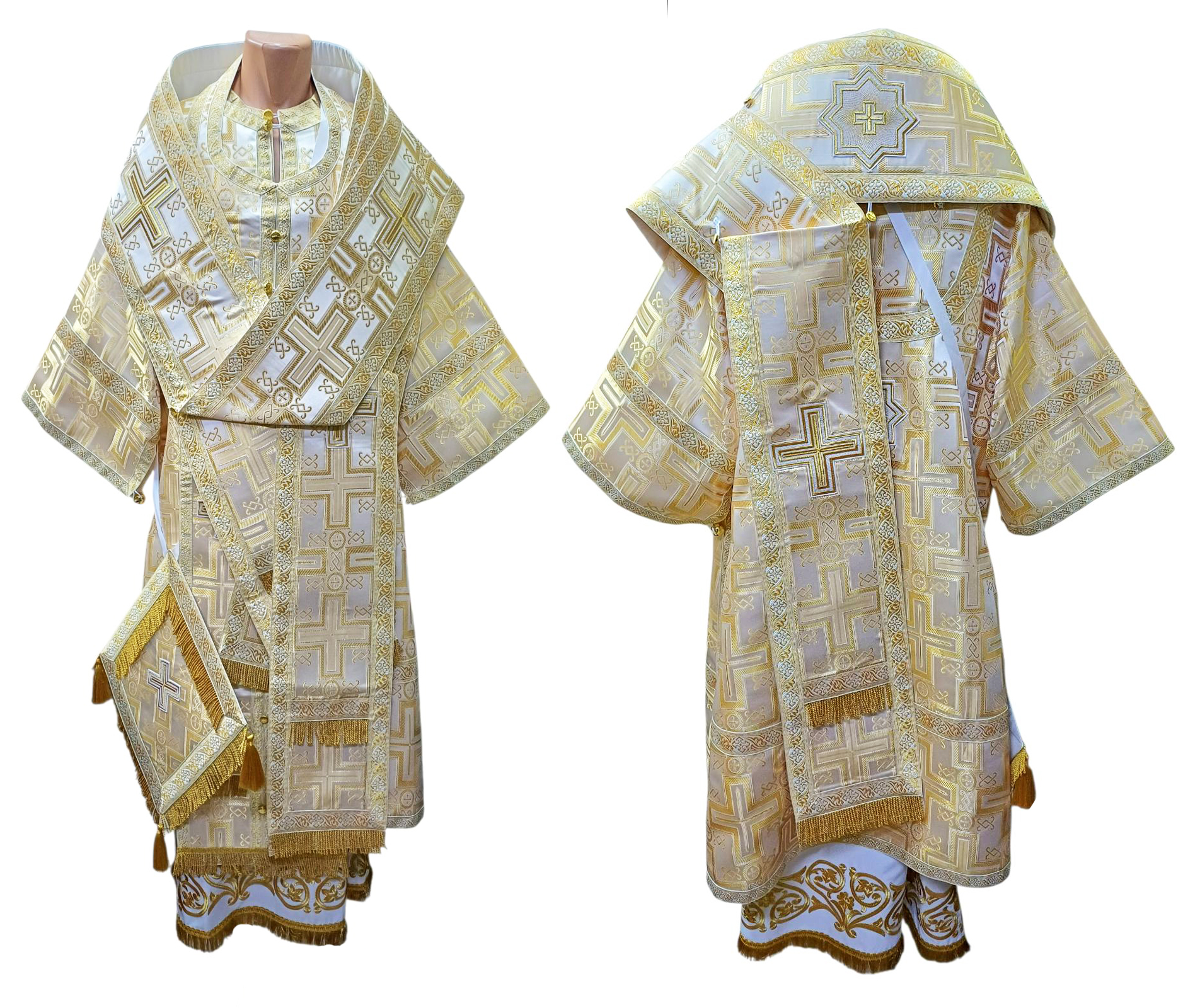 Архієрейське облачення Біле-Золото 54р. Парча "Прямий Хрест"
