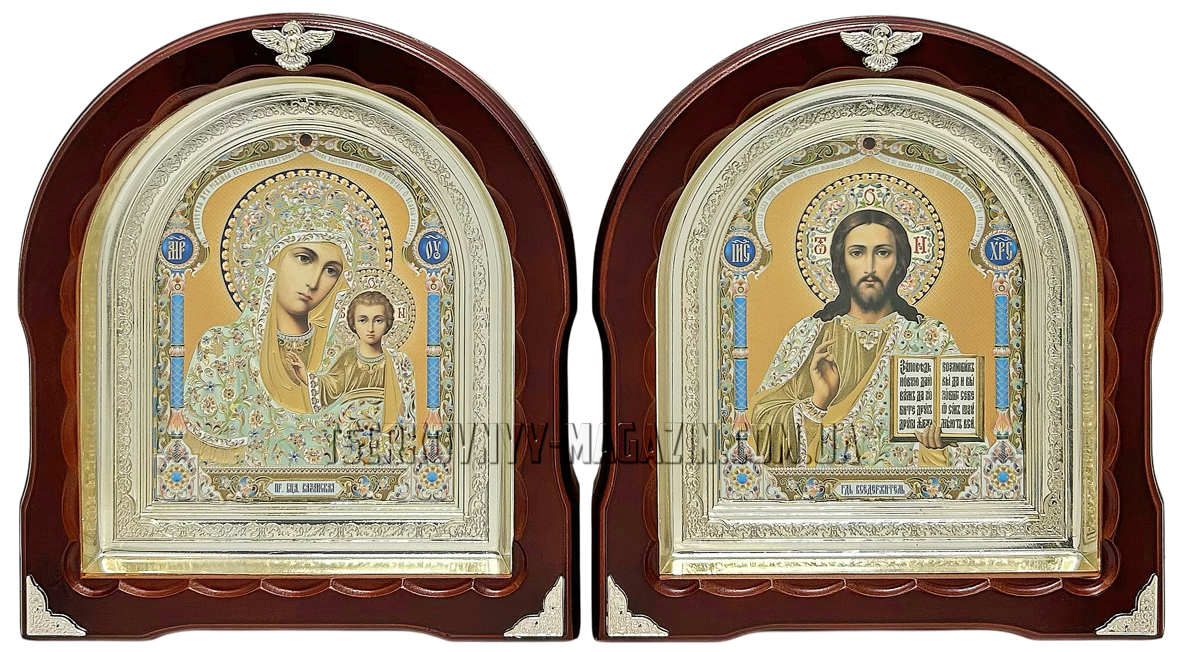 Пара Вседержитель Казанська ↕27.5см ↔24.6см Літографія Срібло