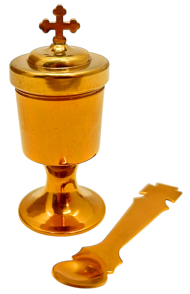 Потир 0,005 л, з лжицею, з нержавіючої харчової сталі та булатним напиленням, з кришкою.