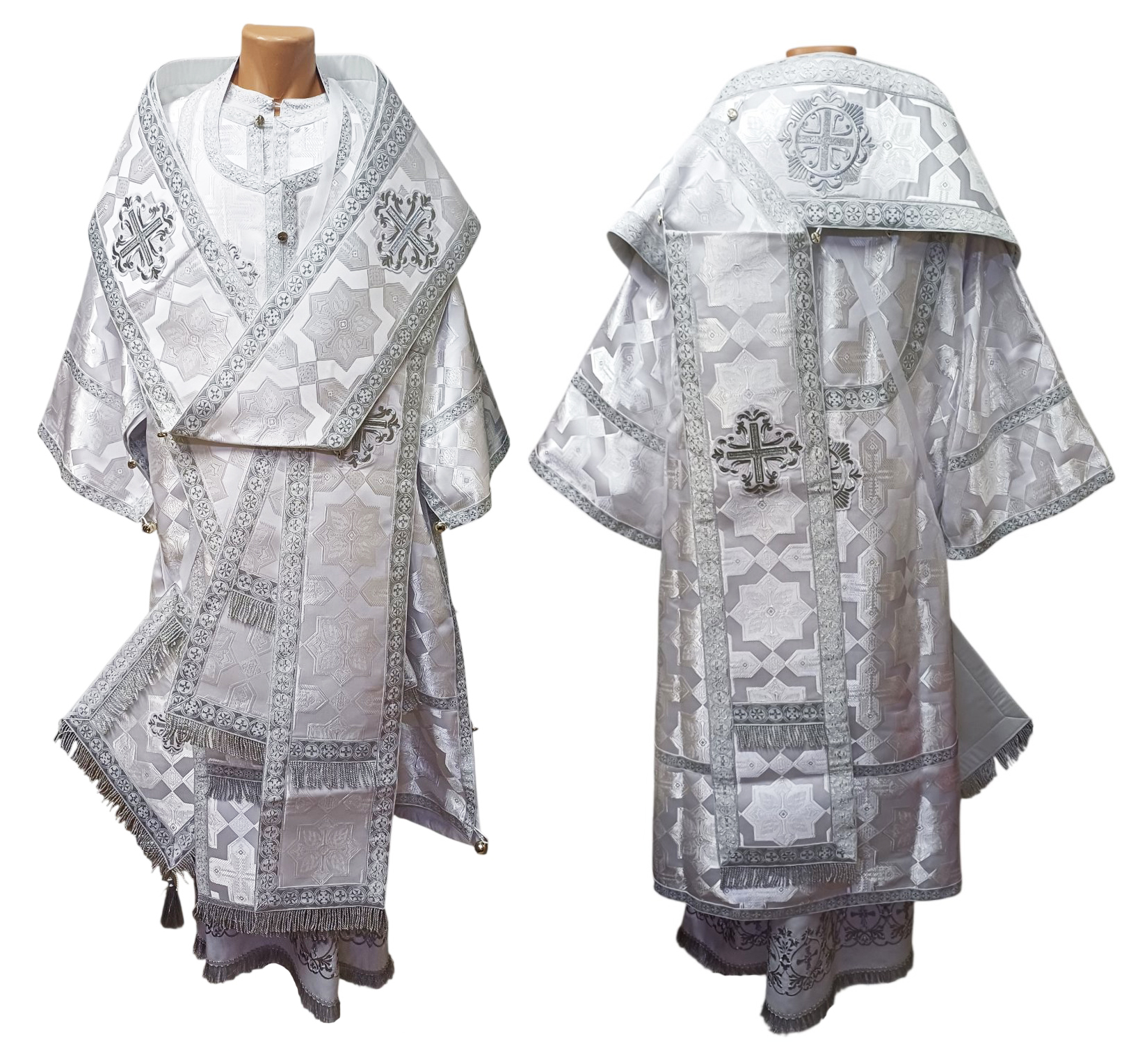 Архієрейське облачення Біле-Срібло 54р. Парча "Хрест"