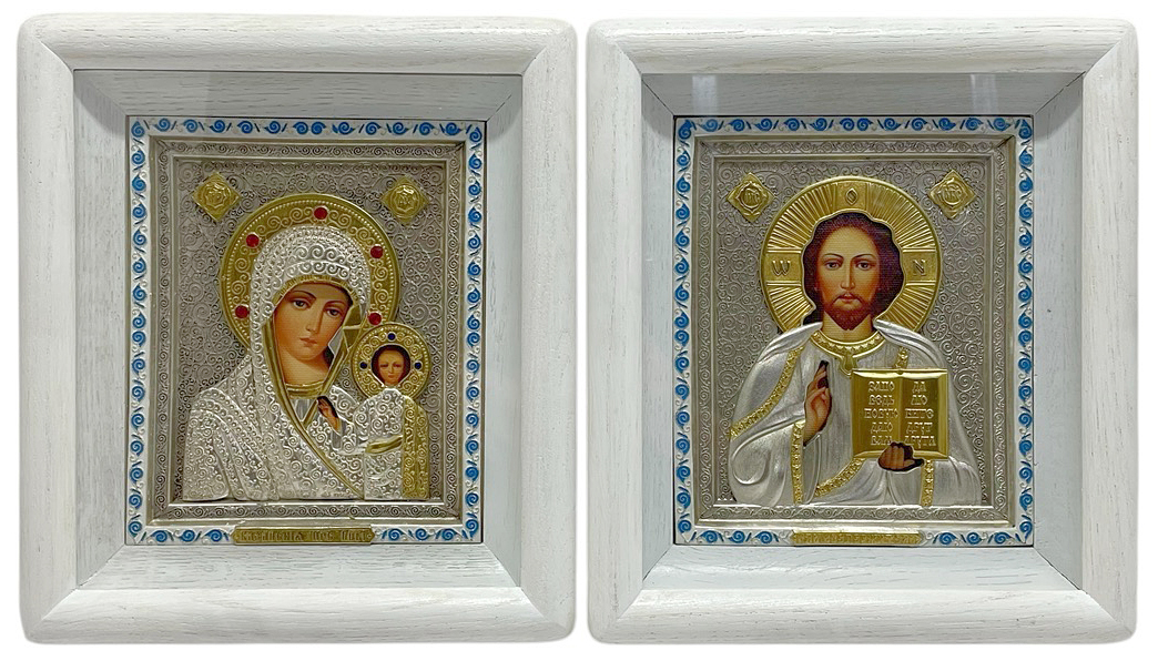 Пара Вседержитель Казанська ↕24см ↔21,5см Гальваніка Емаль Полотно