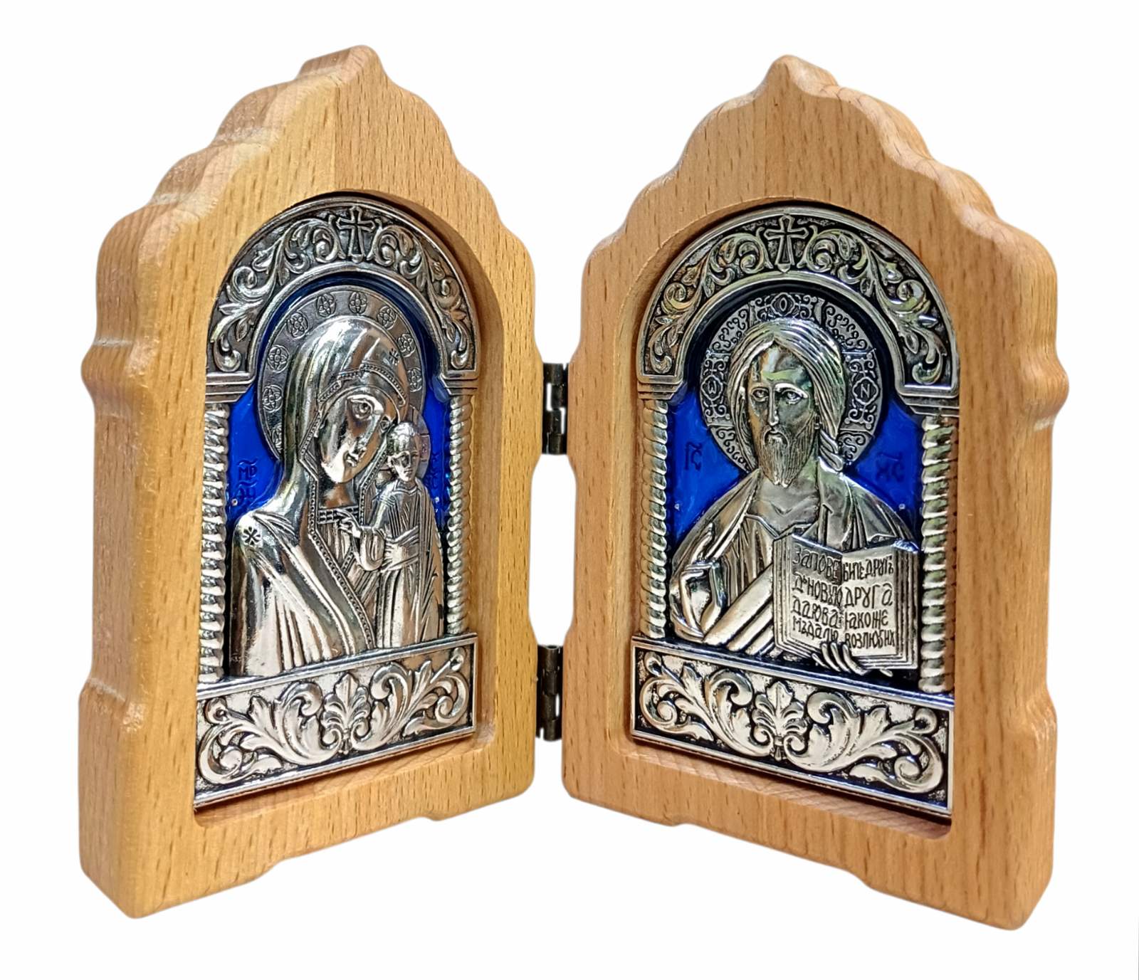 Складень Вседержитель Казанская ↕12см ↔7,5см Дерево Метал Емаль