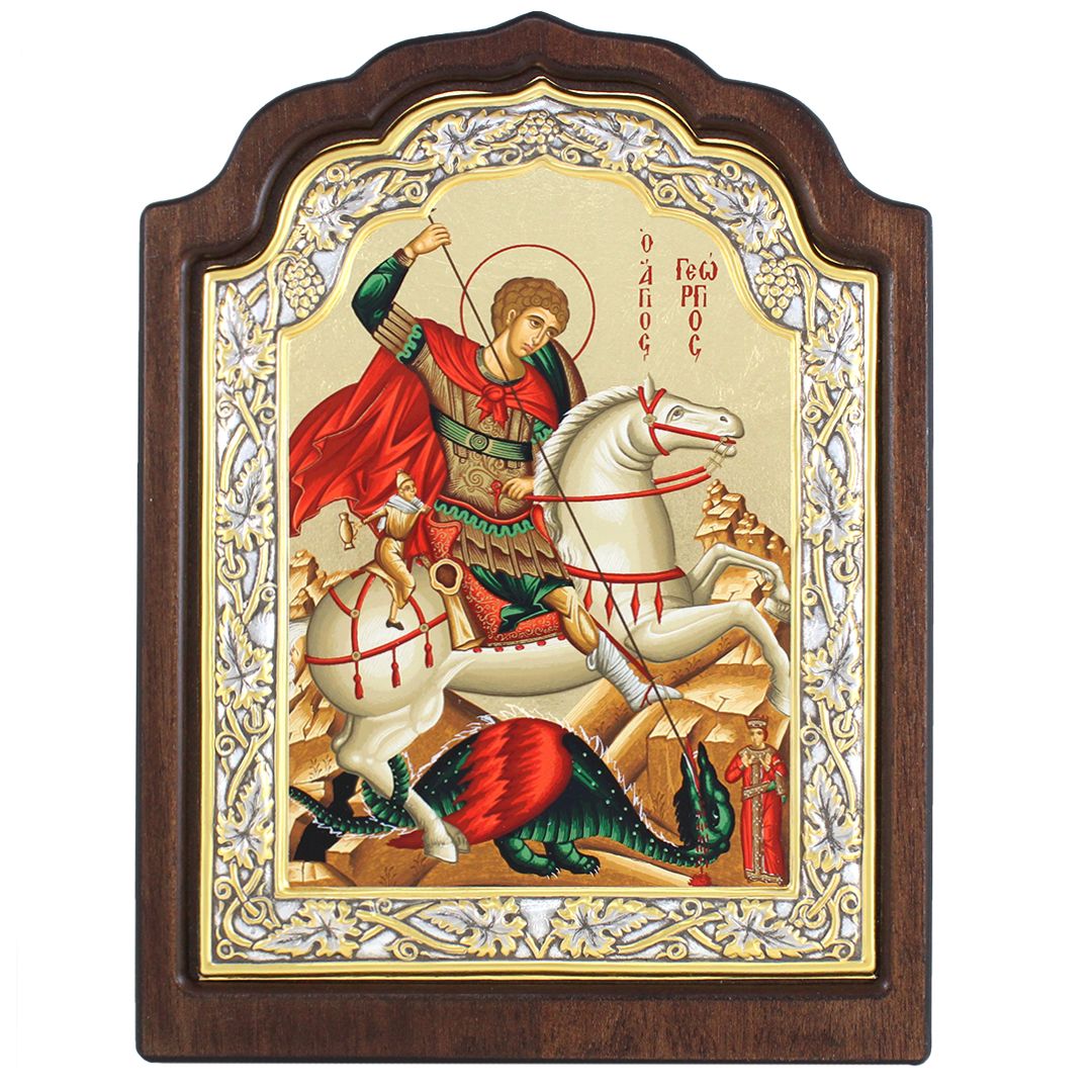 ГЕОРГІЙ ПЕРЕМОЖЕЦЬ   ↕33см ↔25см МДФ Шовкографія Срібло Сусальне золото Греція