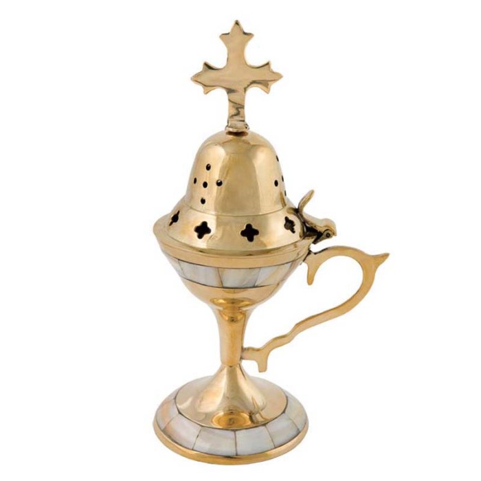 КАДИЛЬНИЦЯ ↕18см Ø6.5см Латунь Перламутр Греція (4735МОР)